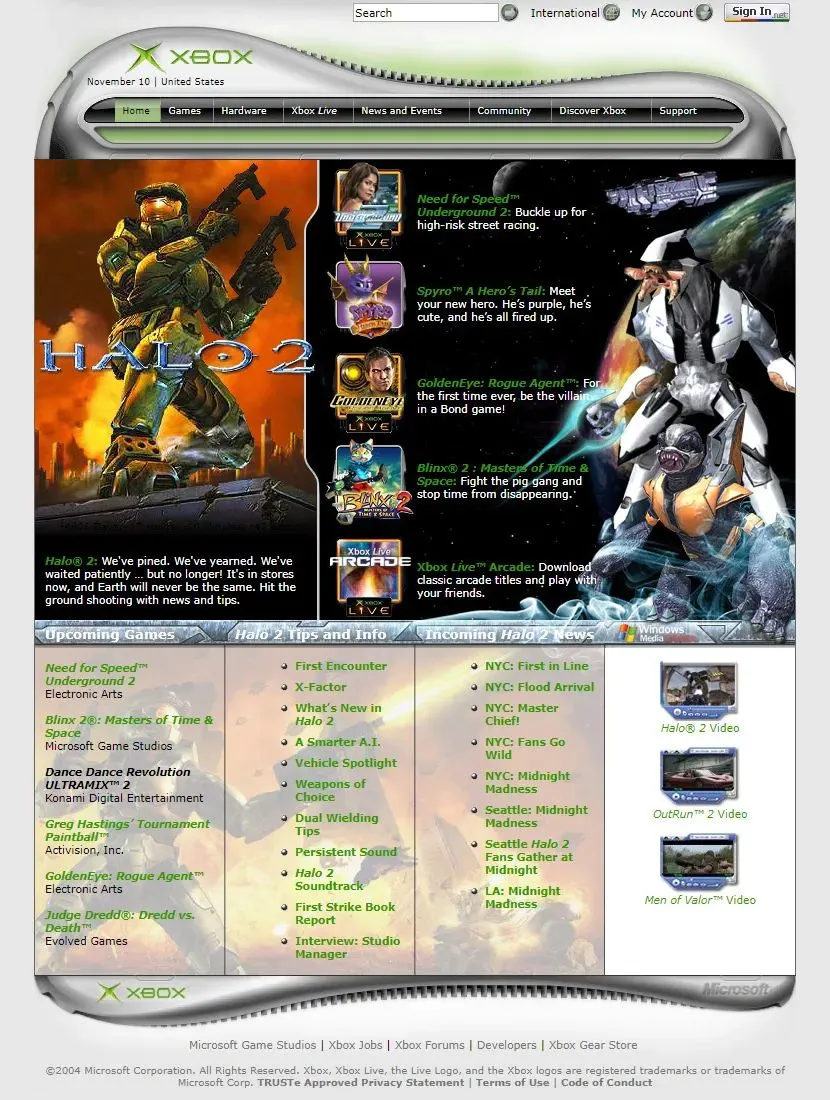 XBOX 官网,2004在 18 年更新的网页设计