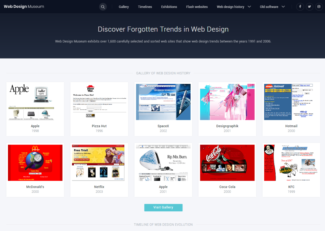 900 个在互联网网页设计历程中具备独特意义的网站,并在 2017 年 5 月推出了网站的第一个版本。当人们浏览网页设计博物馆,会看到