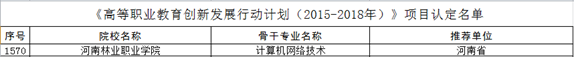 专业荣誉:我校计算机网络技术专业于2015年入选成为河南省骨干专业。并于2019年经过省教育厅评估后推荐到教育部认定成为国家级骨干专业。我校计算机网络技术专业是河南省三所高职院校计算机网络技术国家级骨干专业之一。