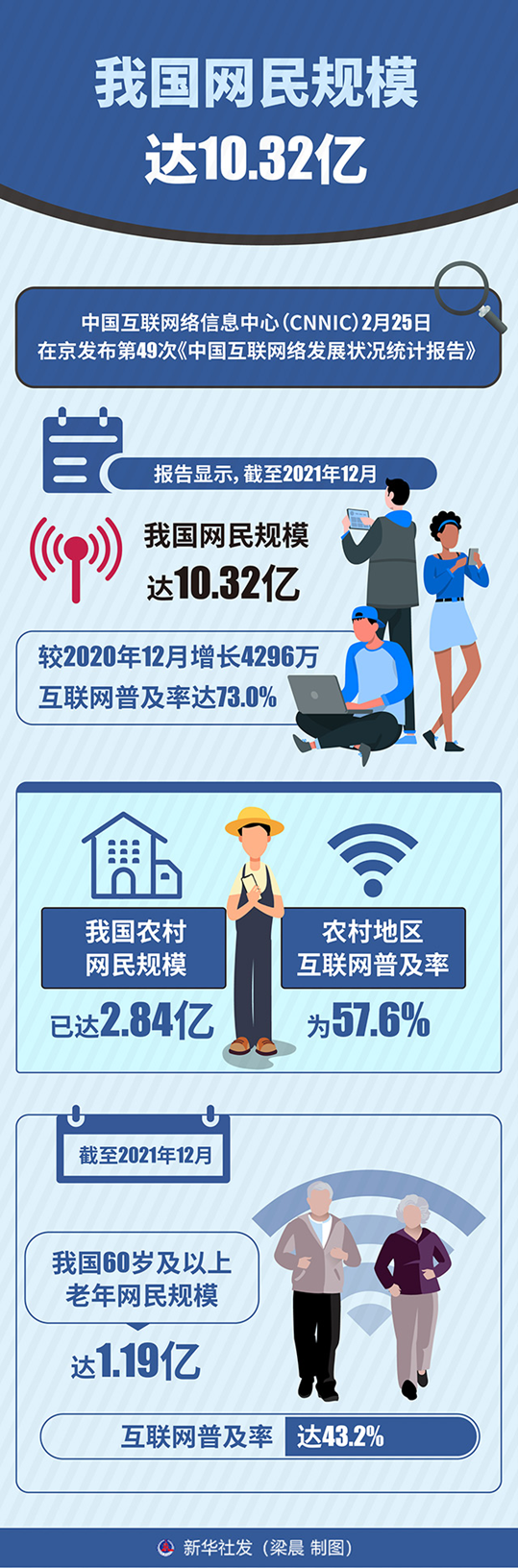 1、我国网民规模达10.32亿,全年共计新增网民4296万人