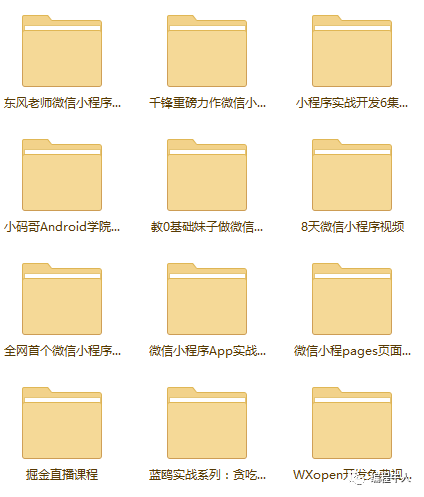 小程序现在几乎成了编程界家喻户晓的必备技能。谁掌握了小程序,就能优先获得就业加薪的机会。而小程序的掌握难度要大大低于APP,通过观看视频就能轻松掌握。只要开发一套小程序代码,就能在安卓和IOS两大平台上应用。因此,深得所有公司和程序员的欢迎。以下学习资料免费下载!!!