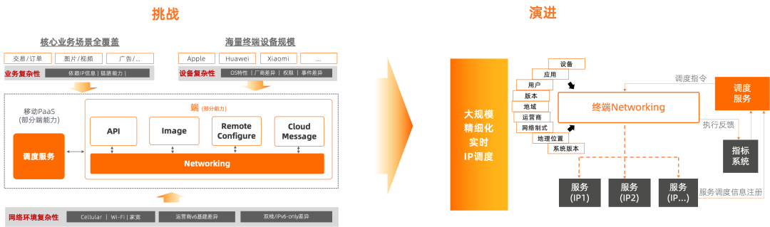面向移动网络环境复杂性,基于淘宝终端网络库增强的IPv6 inside Networking架构及技术能力,实现了端到端的完整IPv6解决方案,保障了淘宝IPv6大规模应用下的用户体验,以及通过移动PaaS输出集团,支撑了大量二三方App快速迁移,包括网络环境感知、策略体验、融合数据产品以及云端调度服务。同时持续沉淀领域数据并引领行业规范。