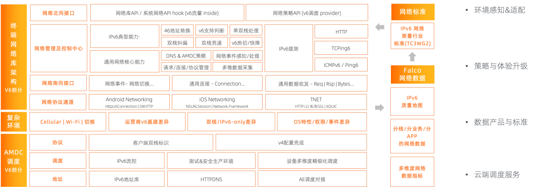 网络是互联网应用的水电煤,IP协议是我们应用层在多数情况下面对的网络最底层协议。因此我们将 IPv4 到 IPv6 的演进称为“基石的升级”,这是一个庞大的系统性工程,尤其是对淘宝这样的体量来说,涉及的范围非常大,本篇回归淘宝App, 用一句话来概括今年IPv6的工作内容就是基于网络库+AMDC产品效能升级支撑IPv6体验升级,其结果就是“沉淀了一张技术大图、建设了一个运营体系,达成了一组目标数据”。