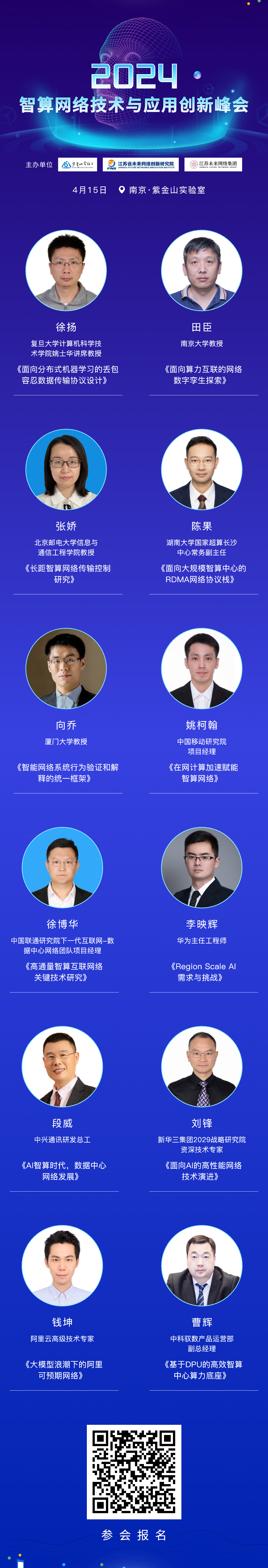 近年来,国内外企业、标准组织、产业联盟等逐步达成建设智算服务的共识,通过政策支撑、资金扶持等方式积极推动智算服务发展,开展智算中心基础设施建设,强化算力统筹智能调度,逐步推进智算网络发展迈向新阶段。数字经济时代,算力就是生产力,尤其是智能算力,在国家“东数西算”工程与全国一体化算力网络的布局下,为促进中国网络领域科技创新发展和产学研融合发展,2024年4月15日,紫金山实验室、江苏省未来网络创新研究院决定在南京举办“2024智算网络技术与应用创新峰会”。会议将围绕数据中心智算网络、异构算力高效互联等方向的技术发展与产业应用进行分享和交流,进一步推动智算网络技术发展和算力网络基础设施建设,助力“数字中国”基础建设,实现“制造强国”等国家战略。
