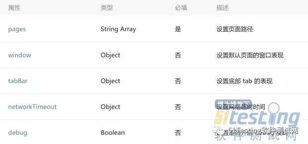 app.json 是对整个小程序的全局配置。其中有5个属性,官方给出的配置表为: