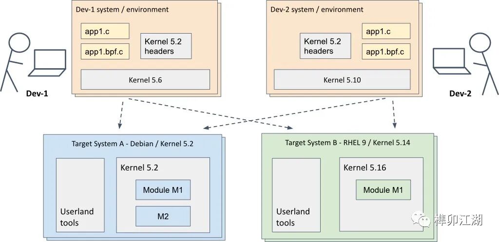 Q:在跨目标方式开发 eBPF 应用程序时,其中开发涉及多个开发系统和内核版本,同时存在多个目标系统和平台,旨在实现跨所有这些平台的可移植性和可维护性,我们需要了解哪些内容?
